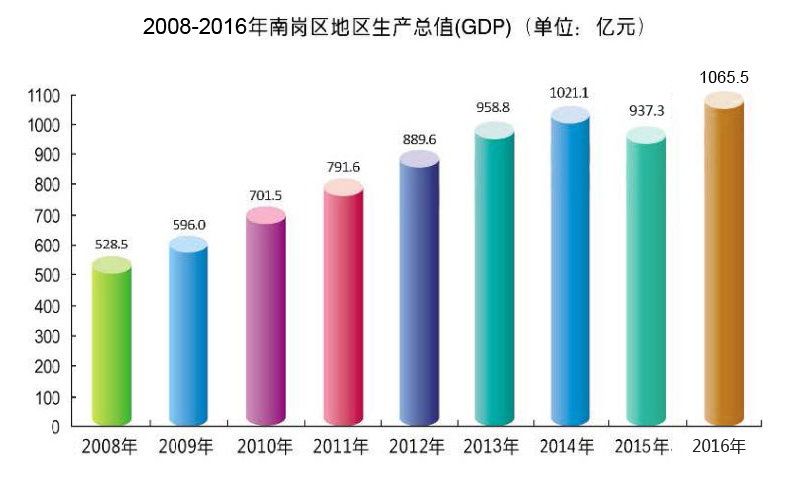 2008-2016年南岗区地区生产总值(GDP) ( 单位•亿元)
