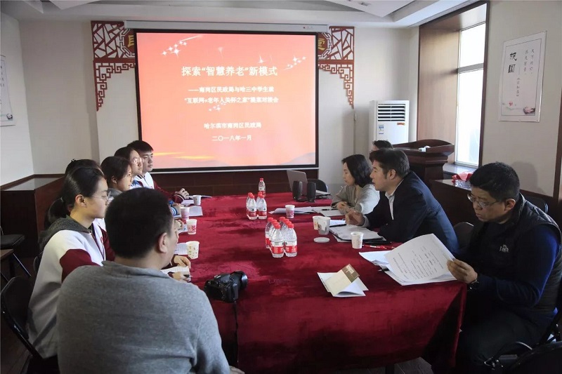 1月12日,哈三中模拟政协社团学子在老师带领下就其《关于以“互联网+老年人关怀之家”推进中国智慧养老的提案》与区民政局相关领导、工作人员展开交流。