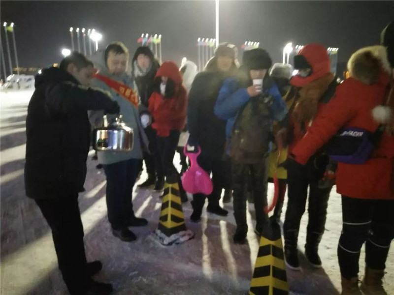 燎原街道“的士”语音e支部的队员们在冰雪大世界出租车停车点服务时,发现很多初到冰城的外地游客,不适应寒冷的天气,很多人感冒、摔伤,为了给这些游客提供更贴心的服务,志愿者们自掏腰包买来红糖、大枣、保温桶,每天队员们分2组,一组负责维持站点秩序,一组负责煮水,到游客集中的地方,免费为寒风中的游客倒上一杯杯红糖大枣水,不仅暖了游客的胃,还热了他们的心。